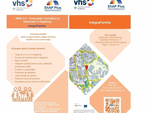 Complet gratuit! Locuieşti în Augsburg și nu știi exact unde să ceri ajutor atunci când ai nevoie? Proiectul ABIA 3.0 este aici pentru tine! Aici poți primi consultanță și sprijin gratuit, în…