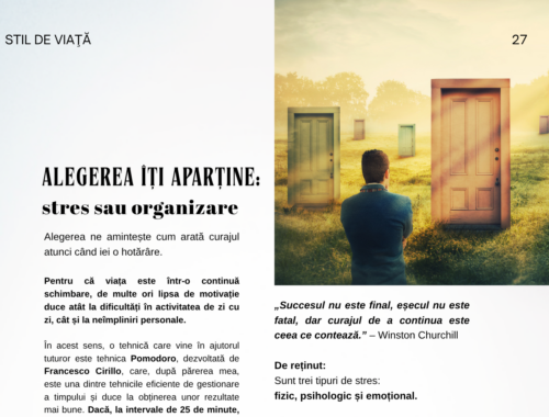 Alegerea ne amintește cum arată curajul atunci când iei o hotărâre. Pentru că viața este într-o continuă schimbare, de multe ori lipsa de motivație duce atât la dificultăți în activitatea de zi…