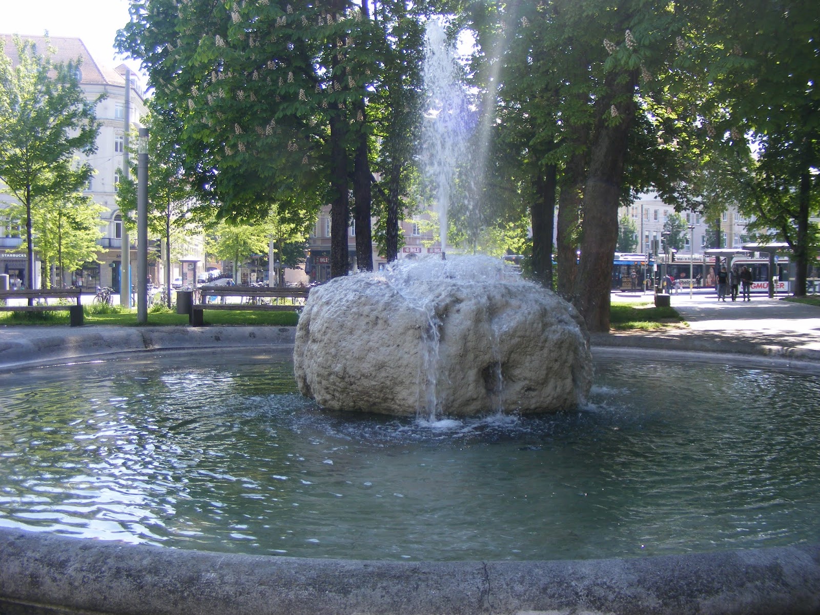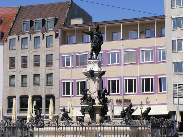 Prima noastră oprire a fost în Königsplatz (Augsburg) o intersecţie a mai multor străzi şi un important nod de circulaţie, cunoscută şi sub numele de „triunghiul de opriri”. Joacă un rol central în transportul local al oraşului, împreună cu gara principală. Aici este şi Parcul Ciorilor, nişte copaci imenşi în care sunt mii de ciori, ocrotite de lege desigur.