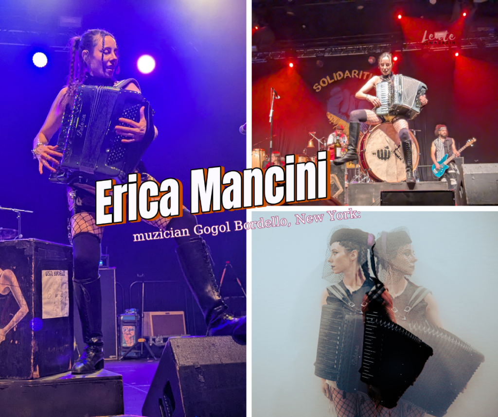 Erica Mancini este muzician stabilit în New York, iar repertoriul ei divers cuprinde folk, jazz, klezmer și rock. Ea face trecerea de la tradiție la inovație prin combinarea compozițiilor electroacustice cu spectacole de circ unice, cu acordeon la înălțime (aerial). Talentul ei de talie mondială a purtat-o pe scene prestigioase precum Lincoln Center și Harvard, precum și în apariții în producții majore HBO și Apple TV și colaborări cu case mari de modă, precum Hermès. De câțiva ani, s-a alăturat celebrei trupe Gogol Bordello.