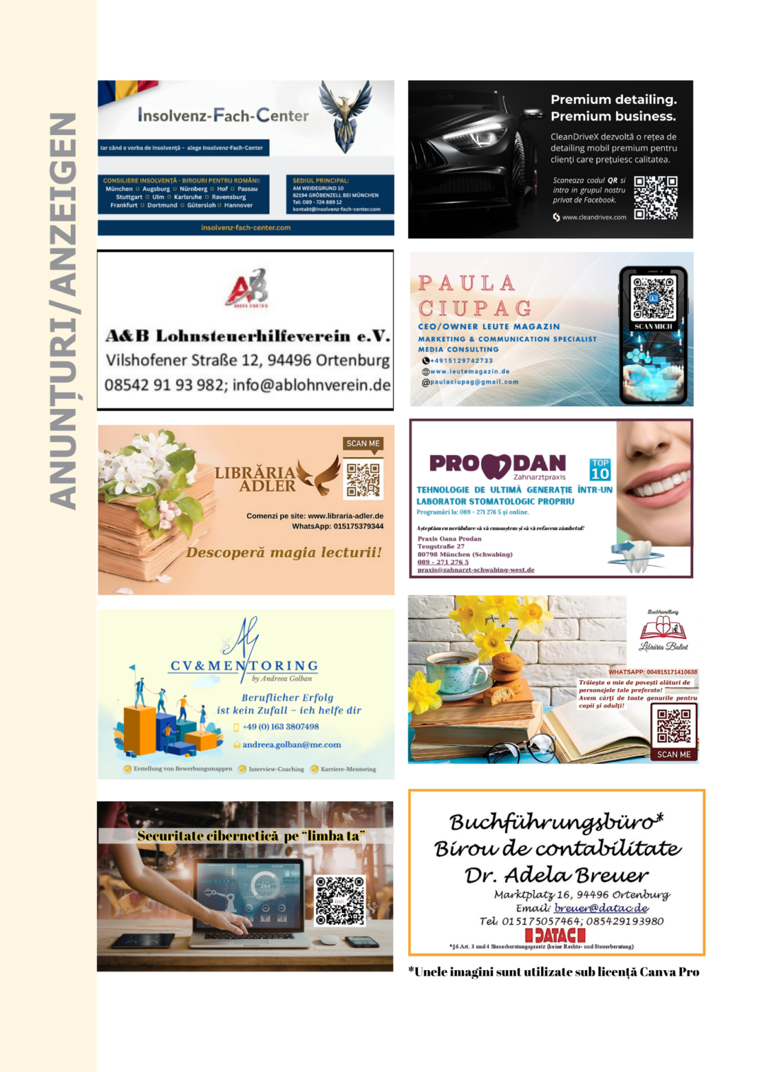 Pentru unii, un anunț publicitar poate părea doar un nume de firmă de pagină. Pentru noi, înseamnă mai mult: este o formă de susținere pentru o revistă care vorbește despre oameni, despre reușite, despre provocări și despre legătura dintre românii din diaspora și valorile care îi definesc.